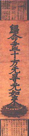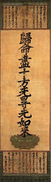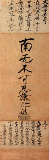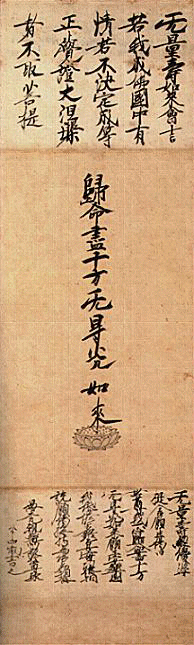 - Cette formule semble avoir joui d'une certaine prédilection aux débuts du Shinshû: quatre exemplaires de la main de Shinran nous sont parvenus, dont trois au Senjuj (1, 2, 3), et le quatrième au Myôgenji.