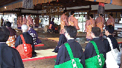 C'est dans ce bâtiment, qui peut s'ouvrir sur les quatre côtés, que prennent place les officiants lors des liturgies célébrées devant le tombeau de Shinran.