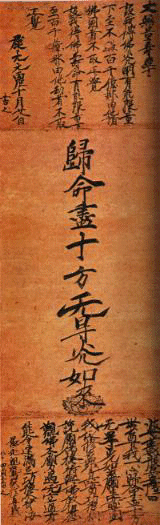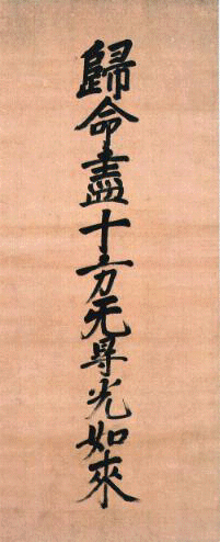 - Cette formule semble avoir joui d'une certaine prédilection aux débuts du Shinshû: quatre exemplaires de la main de Shinran nous sont parvenus, dont trois au Senjuj (1, 2, 3), et le quatrième au Myôgenji.